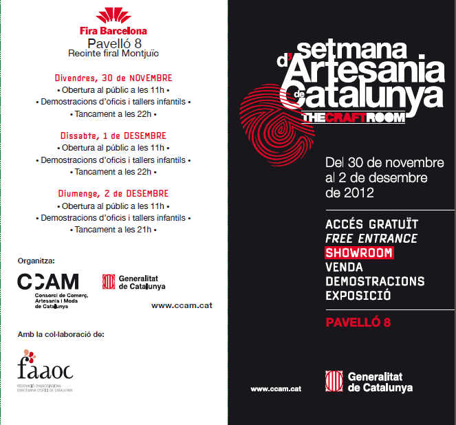 Artesania Catalunya està preparant la segona edició de la Setmana d’Artesania de Catalunya la qual inclou, entre d’altres activitats, la realització del Saló The CraftRoom.
